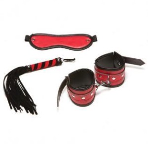 X-Play Red 3Pc Kit Mask Whip and Wrist Cuffs