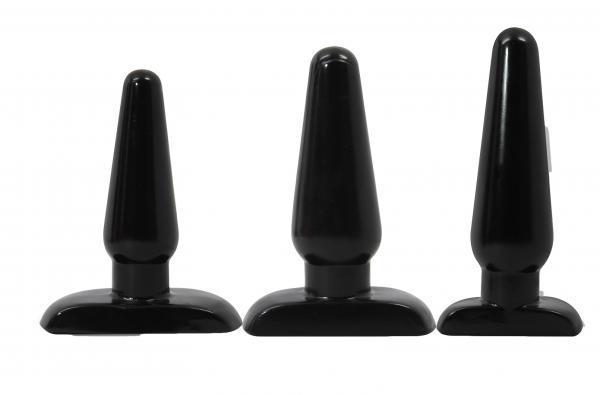Work your way up to advanced anal pleasure. Hard Steel Anal Trainer Kit Black. Ready to take a dive into extreme anal exploration? The Hard Steel Anal Trainer Kit will help your body safely acclimate to major length and girth! Start small and work your way up to large. Hard Steel plugs are made of solid PVC. Each plug is tapered for comfortable insertion and is equipped with a neck to hold it in place and a firm base for anal safety. Lube them up and get ready to train!