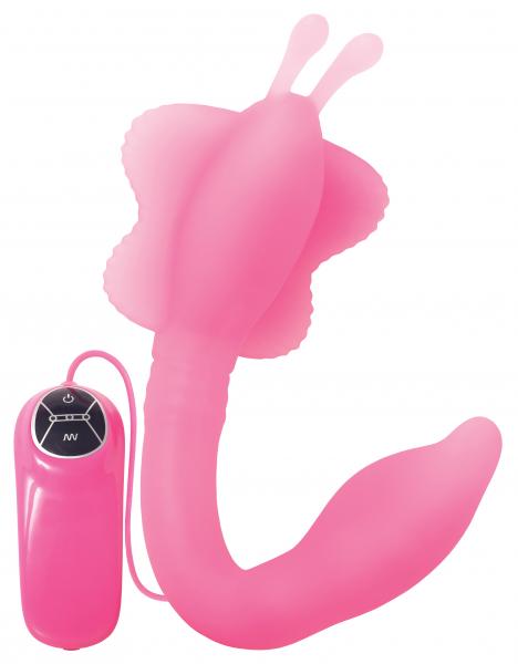 Adam and Eve Bendable Butterfly Vibrator Pink features: powerful, custom your orgasm. Clitoral stimulator butterfly makes you explode! Designed by Adam and Eves own sex toy experts, the Bendable Butterfly has dual motors, multiple vibration options, flexible shaft and sheer versatility are quickly making it a customer favorite! Pose-able shaft bends and flexes for a personalized toy. Bend it in half for G-Spot and clitoral stimulation. Straighten it out for deep penetration. Butterfly wings tease your lips and antennae work your clitoris. Curved tip focuses vibrations and makes G-Spot stimulation easier. 2 powerful motors offer 7 thrilling vibration modes. Waterproof for wet and wild fun in the shower. Measures 1 inch wide and 7 inches long, insertable. Body safe materials Phthalate free, hypoallergenic silicone. Vibrating sex toy requires 2 AAA batteries, not included.
