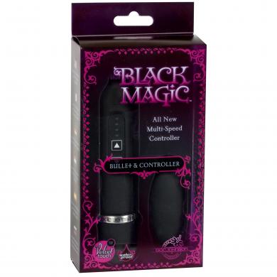 Let Doc Johnson cast a sexy spell that will leave you breathless and enchanted. The Black Magic Collection is the sexiest new look in toys and a must in all toy boxes. Available in individual pieces, or together in this brand new amazing and enticing kit. Black Magics 7 Velvet-Touch massager is multi-speed and waterproof. Or will it be our Black Magic Bullet – Four powerful speeds, waterproof and velvety soft. And of course our waterproof, velvet-touch, Black Magic Pocket Rocket. Cant make up your mind? Presto!! Take them all in our spellbinding Black Magic Kit. Complete with all 3 massagers and a bottle of 1oz. Black Magic Lubricant. Sleek, sexy, velvety, alluring. See what the Doc has conjured up for your pleasure!