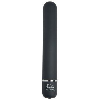 Fifty Shades Pleasure Collection Classic Vibe. A classic vibrator with a smooth form and a rounded tip to seek out your sensitive spots and please them with a selection of powerful vibration modes. Use as part of a solo play or as an accessory to your shared pleasure, applying water-based lubricant to the length of the vibrator and yourself before pressing the button on the base for your pleasure to begin. Includes a luxury satin storage bag. Requires 2 AA batteries, not included. Made of skin safe ABS plastic. Does not contain Phthalates or latex. Length: 7.00 Inches; Insertable Length: 5.00 Inches; Width: 1.00 Inches. Made in China.