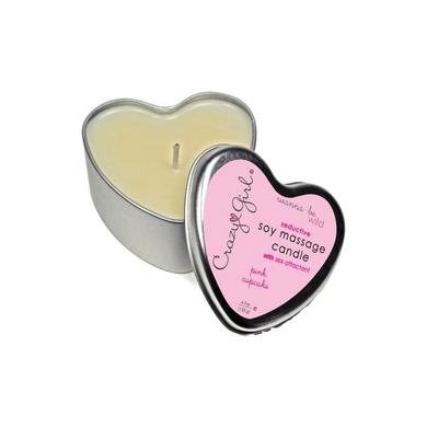 Crazy Girl Soy Massage Candle Pink Cupcake CE780004. Crazy Girl Wanna Be Wild Seductive Soy Massage Candles with Sex Attractant product features paraben-free, sugar-free, sulfate-free formula. Candlelight, seduction, massage a diva's trio of favorites. Made with natural soy oil and other skin conditioning oils for a skin conditioning, warm body massage. Soybean oil combats wrinkles and uneven skin tone, antioxidant, protein moisturizing and healing properties. Coconut oil moisturizing, skin softening. Hemp seed oil moisturizing, hydrating and reduces appearance of wrinkles, rich in antioxidants, Vitamin E and carotene neutralizes effects of dehydration, protects against dry skin and anti-inflammatory. Apricot kernel oil moisturizing, hydrating, conditioning, softens, nourishes and emollient. Jojoba seed oil skin lubricating and moisturizing. Avocado Oil soothing, softening, rich in Omega-3 oils, contains Vitamins A, D and E relieves dry, itchy skin, increases production of collagen and ultra-moisturizing. Vitamin E conditions, nourishes, improves skin surface, smooths, moisturizes, assists in scar and acne treatment, promotes healing, protects skin from itchiness and free radical damage. Made from natural soy and adorned with hemp wicks for a body and environmentally-friendly massage candle. Provides soft, ambient light. Provocative fragrances are pleasing to the senses. As candle burns; it liquefies into warm moisturizing oil to enrich skin and enhance any loving touch or body massage. Soy candles burn cooler and cleaner than wax. Will not burn skin as soy oil melts to only two degrees above normal body temperature. Leaves no candle wax or residue. Clean up using hot water and soap. Designed for all skin types. Infused with pheromones to enhance sex appeal. Available in 2 Scents: Pretty Plumeria a vibrant, sweet floral aromatically influenced with tropical fern and island breeze an aphrodisiac medley that is almost sinful. Pink Cupcake is a playfully soft fragrance with the sweetness of sugar, cotton candy, vanilla musk and light fresh berries a simply irresistible combination for flirty little moments. 4.7 ounces tin. Each sold separately. No Animal Testing. Classic Erotica. Made in USA.