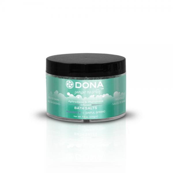 System JO DONA line part 2 Pamper Me Pretty Bath Salts Naughty Sinful Spring 7.5oz. Awaken the senses with DONA Bath Salts. Their soothing blend of aphrodisiacs and pheromones and irresistible aromas will leave skin beautifully soft and refreshed. Release your inner siren by treating yourself to the true luxury you deserve. Soak in a blissful bath. Let a gentle glow spread across your supple skin. Delight your senses with irresistibly scented perfumes. You are beautiful. Do not deny it. Seduction begins within. Bath Salt key features: Aphrodisiac and pheromone infused. Romance yourself and your lover in an indulgent bath. 3 fragrances: Flirty Blushing Berry, Sassy Tropical Tease and Naughty Sinful Spring. Each sold separately.