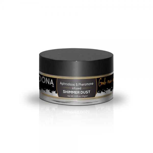 System JO DONA Seduce Me In Gold Dust .25oz. Give yourself a gorgeous glow with DONA Shimmer Products. This kissable blend of aphrodisiac and pheromones with a hint of classic color will leave skin beautifully radiant and irresistible. Shimmer dust key features: aphrodisiac and pheromone infused. Create a subtle, glittery glow. Easy puff application. Available in 3 classic colors: Pink, Silver and Gold. Each sold separately. Made in the USA.