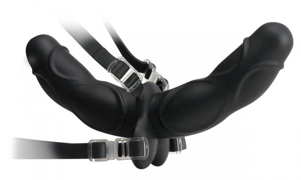 Fetish Fantasy Elite Double Delight Strap On Black. When your fetish play demands the best materials possible, only the Fetish Fantasy Elite line will do! Made from 100% medical grade Elite Silicone, this ultra premium collection is body-safe, hypo-allergenic, and sculpted to excite. Elite Silicone quickly warms to body temperature and conforms to the body's contours, giving users the most realistic stimulation ever imagined. Double dong is phthalate free, latex free, nonporous and the safest sex toy material on the market today!