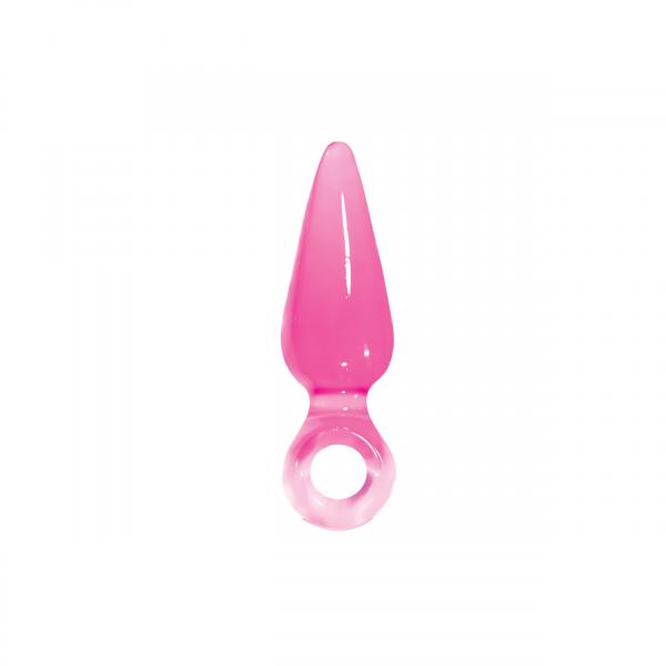 New Sensations NS Novelties Jolie Pleasures Small Pink Butt Plug. Comfort, style and pleasure are all rolled into one! Jolie pleasures are newly designed pleasure plugs to be used in any way you see fit. This item is available in 4 sizes for just the right fit, and is suitable for all lubricants. They are tapered for easy insertion, and provide proper seating after insertion. This 4 inches/ 2.75 inches excluding ring pleasure plug with finger hold is flexible, made of body safe Thermoplastic Elastomers TPE, and are phthalate free. Weight 1.90 ounces.