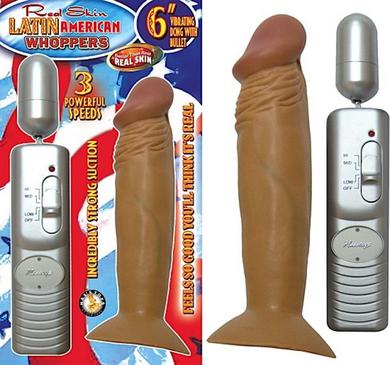 Real skin 6″ flexible vibrating dong with 2″ bullet. 3 powerful speeds. Suction cup base. Material: Dong-PVC, Controller & bullet-ABS. Waterproof. Phthalates free. RoHS compliant. 3 AA batteries.