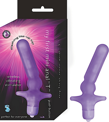 Wireless vibrating stimulator. Flashing lite-up Anal “T”. Push button. Waterproof. Phthalates free. Material: ABS. Length 3″. 3 mini batteries included.