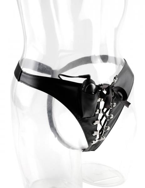 Give your sex life a charge with the Shock Therapy Pleasure Panties! Perfect for beginners and those new to electro-sex, these G-string pleasure panties plug into the electro-power unit and provide thrilling e-stimulation right where you want it most. Choose a setting on the power unit’s dial to control the intensity and go from a sensuous tingle to a throbbing tap in seconds. Switch between “SLOW” or “FAST” to control the frequency of the shock, or adjust the dial to control the strength of the shock. Either way, it's your little secret!