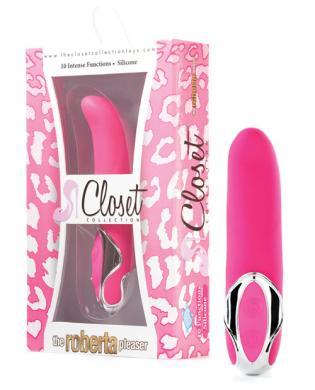 Closet Collection Toys Roberta Pleaser Vibrator. The Roberta is a sleek, silicone massager stripped down to its most natural form. Powerful and easy to use, the one touch buttons respond to your every whim. Offering 10 levels of pulsating, escalating ecstasy. The gently curved head is specifically designed for G-Spot and clitoral stimulation. Made with a velvety soft coating, this high-end massager is a force to be reckoned with. Vibrating sex toy requires 2 AAA batteries, not included. Skin safe. No smell. Not sticky. Phthalate Free. Made from ABS plastic materials. Warranty card included. Closet Collection Toys from Impulse Novelties. Length: 6.75 Inches; Width: 1.50 Inches.