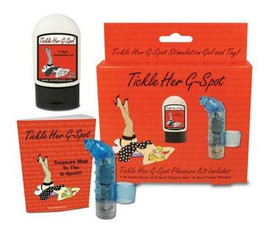 Tickle Her G-Spot gel temporarily increases the size and sensitivity of the G-Spot. This product is latex condom friendly. The priceless Treasure Map to the G-Spot Guide will show you how to locate the G-Spot and demonstrate the best sexual positions to use with the multiple-speed G-Spot finger vibrator.