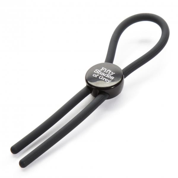 Fifty Shades of Grey Weekend Collection Again and Again Adjustable Love Ring. Realize your peak potential during shared encounters with Again and Again, a slide to fit adjustable ring designed to help enhance erections and optimize staying power, for drawn out passion sessions and complete satisfaction. Features: Silicone lasso style Fifty Shades of Grey love ring. Can help enhance his erection size and stamina during lovemaking. Completely adjustable to suit men of all girths. Fit can be altered during sex for a tailored experience. Travel friendly sizing for holidays and hotel stays. Quick release button.