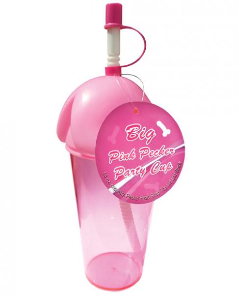 Big Pink Pecker Party Cup from Hott Products. 16 ounces capacity. Pecker head snap lid and straw. Color may vary.