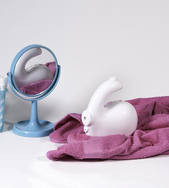 Unique recharging system for discreet charge. Lithium ion rechargeable battery technology for dependable operation. Environmentally friendly full charge allows for one hour plus run time. On/off switch includes charge indicator. The most compact powerful and ergonomic portable personal massage product that is fully submersible. Please note shown with mirror and pink towel, not included.