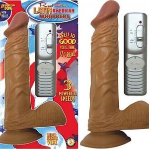 Real Skin Latin American Whoppers Vibrating Dong With Balls 8 Inch – Brown